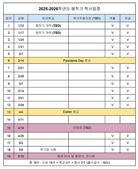 2026년도 봄학기 학사일정